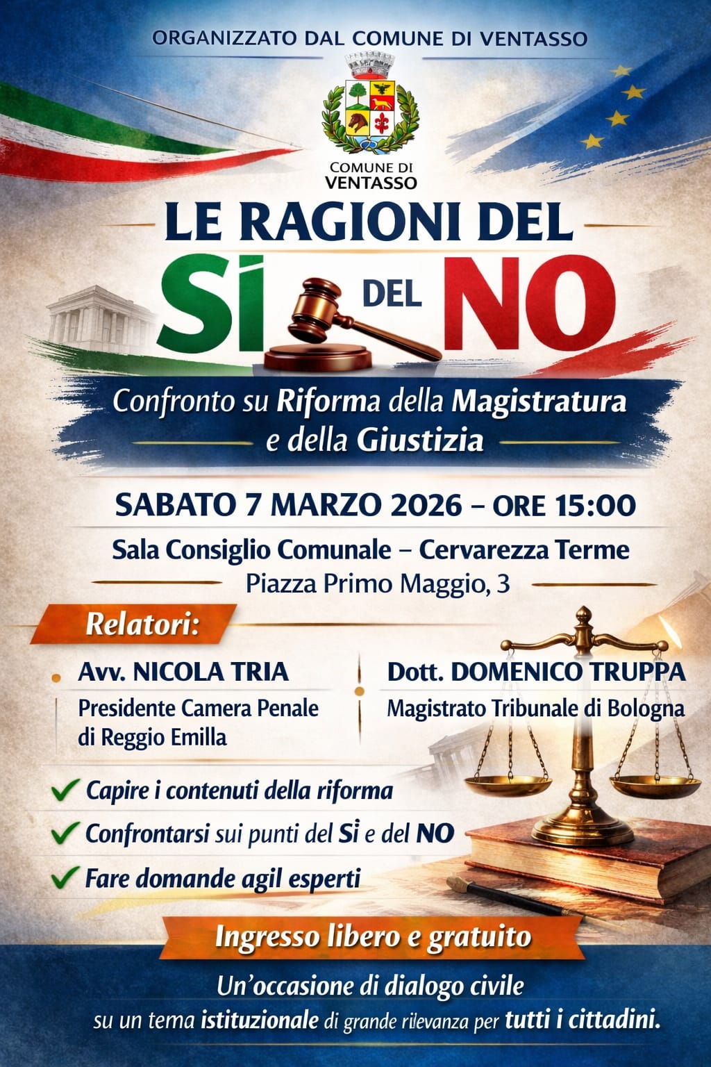 CONFRONTO SU RIFORMA DELLA MAGISTRATURA E DELLA GIUSTIZIA: LE RAGIONE DEL SI' E DEL NO