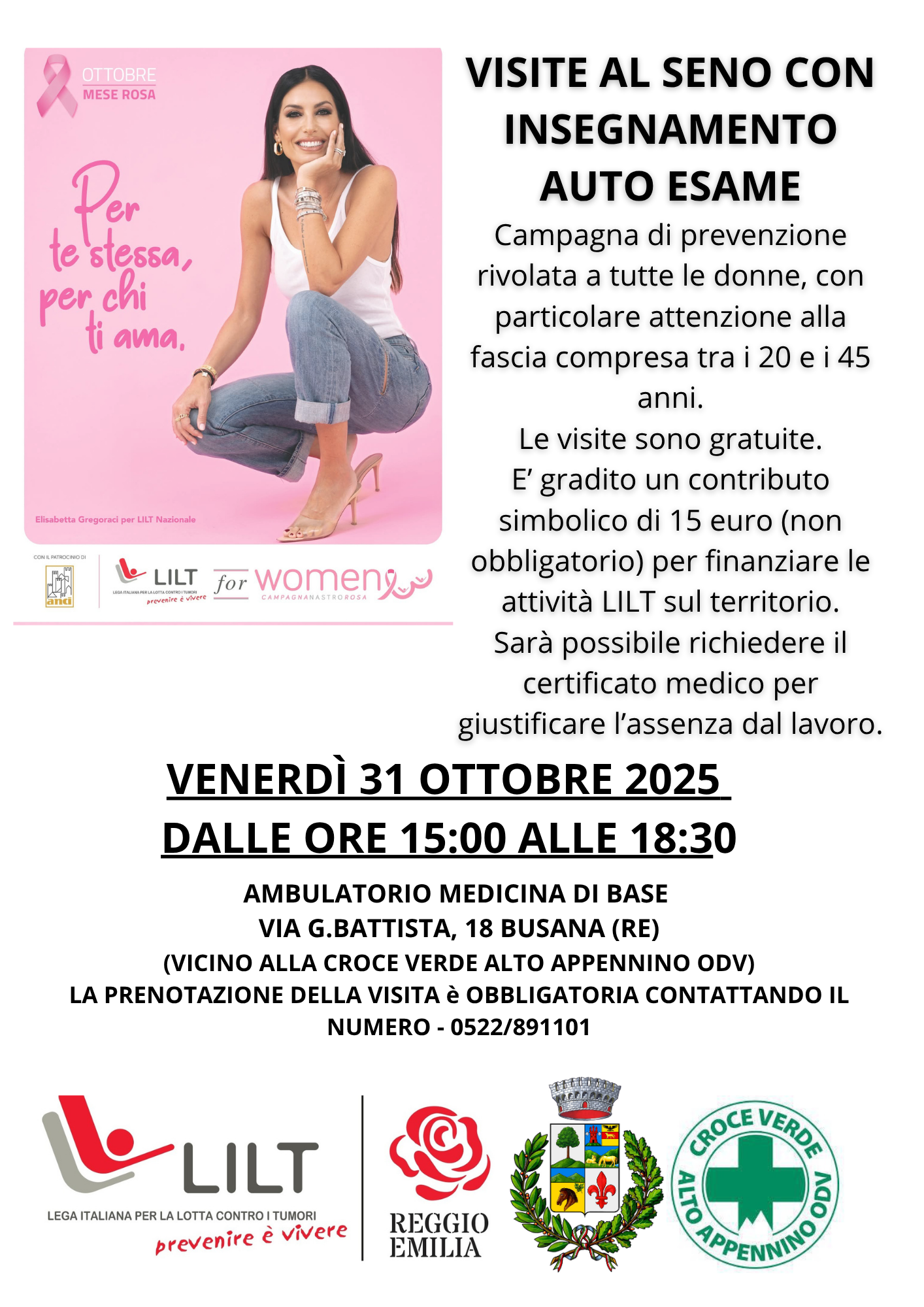 VISITE AL SENO CON INSEGNAMENTO AUTO ESAME – VENERDÌ 31 OTTOBRE 2025 DALLE ORE 15:00 ALLE 18:30